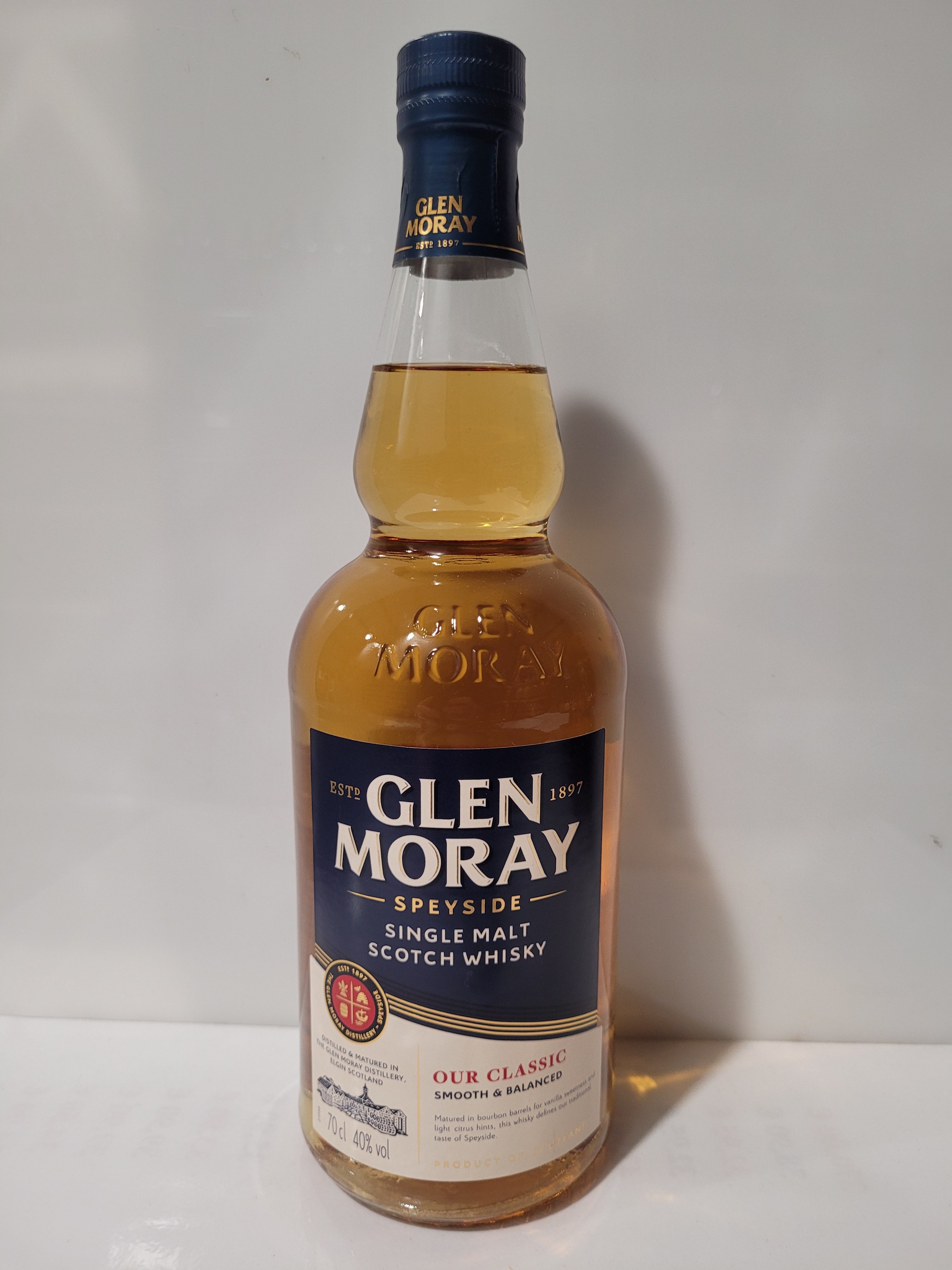 Inaugurée en 1897, Glen Moray fait partie des plus anciennes distilleries du Speyside, région idéale pour la fabrication du whisky pour la qualité de son orge et la pureté de son eau. Ce Single Malt Elgin Classic est vieilli en moyenne pendant sept ans dans d’anciens fûts de bourbon. Léger et fédérateur avec ses douces notes maltées aux nuances de caramel, d’herbes fraîches et de gingembre, ce whisky est un excellent rapport prix-plaisir !